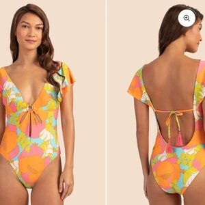 Trina Turk Orange and Pink One Piece with Ruffled Sleeves