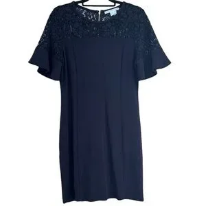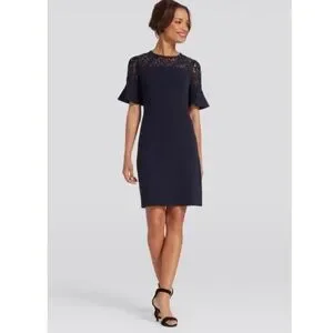 Draper James Solid Flutter Short Sleeve Dress in Navy Blue Size Medium