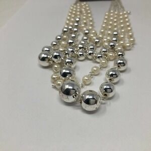 Daisy Fuentes 4 Strand Pearl Silver Bead Necklace Layered