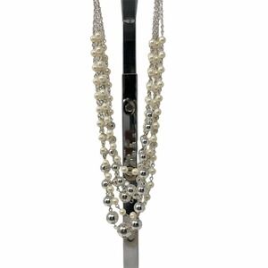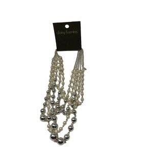 Daisy Fuentes 4 Strand Pearl Silver Bead Necklace Layered. Condition is "New with defects". This has been shuffled around in a jewelry drawer and has some visible scratches and marks not noticeable to the naked eye. Shipped with USPS First Class.