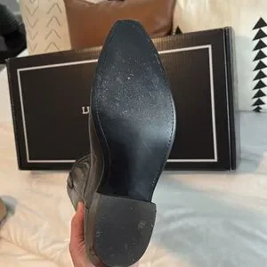Stylish black cowboy boots with intricate stitching. Worn twice. Lowball offers will not be considered.