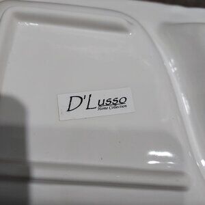 Elegant serving tray platter from the D'Lusso Home Collection features a 2 divided plate made of high-quality ceramic. The tray comes with a sturdy black metal stand that ensures stability and ease of serving warm items. Perfect for hosting dinner parties or family gatherings, serving appetizers, entrees, and desserts is a joy on this 12-inch x 6-inch tray.