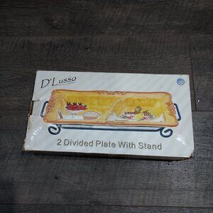 Serving Tray Platter D'Lusso Home Collection 2 Divided Sections Metal Stand
