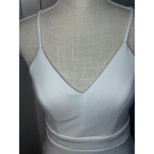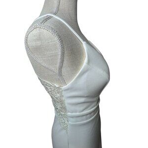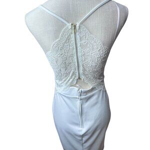 White Spaghetti Strap Lace Back Midi Dress Gold Zipper Formal Wedding Homecoming