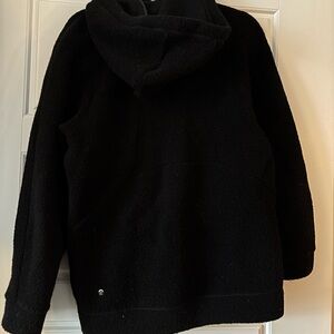 Black lululemon “So Sherpa” jacket. Silver zippers and silver logo. Very soft, hip length, big hood.