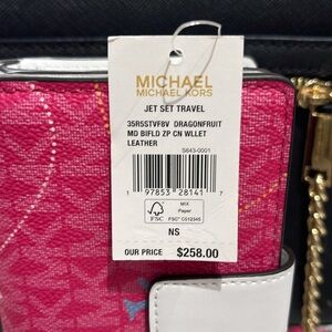 Michael Kors Medium Saffiano Leather Bifold Wallet Dragonfruit NWT