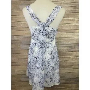 Jessica Simpson Size 4 Dress Blue White Pleated Lined Size Zip Faux Wrap Style
