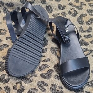 MIA Black Sandals with Adjustable Buckle and Thick Sole