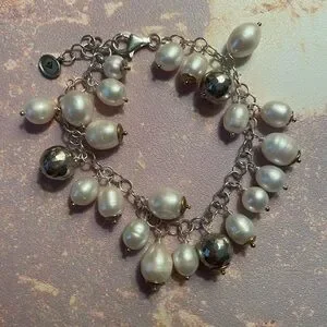 This elegant Silpada bracelet features lustrous white pearls and sterling silver perfect for adding a touch of sophistication to any outfit.