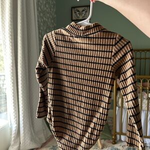 Girls brown and black striped bodysuit with mockneck and ribbed fabric.