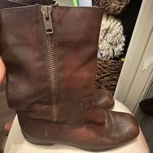 A classic Frye sturdy Stylish brown leather boots with a square-toe design. Perfect for a chic look. These boots are pre loved and the leather is unmatched. Will last forever!
