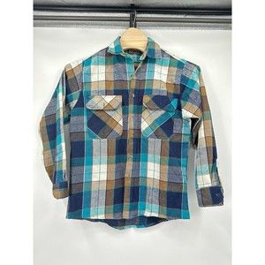Vintage Private Property Flannel Shirt Mens M Blue Green Plaid Button Up Thick