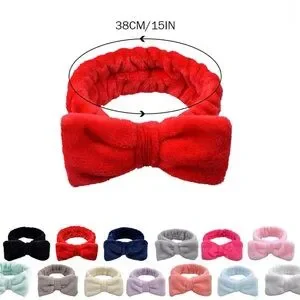 Soft and plush headband with a bow design. Perfect for adding a cute touch to your look or perfect to use while applying your make up.