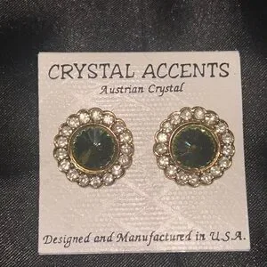 Gold and Jade Iridescent Multi-Diamond Pierced Earrings by Crystal Accents