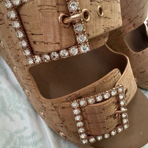 Corkys Women's Cork Wedge Sandals with Rhinestone Buckle