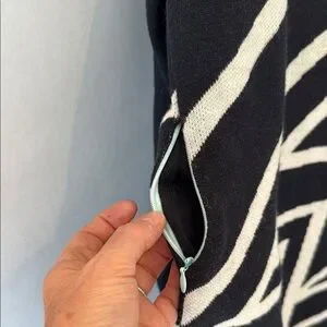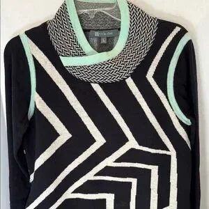 Stay stylish and comfortable with this chic black and white with sea-foam green accent sweater from Title Nine. Perfect for any occasion. Tunic length. Perfect either way leggings.