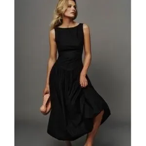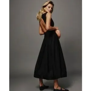 Anthropologie Reformation Elvira Open-Back Midi Dress – Black – Organic Cotton – Size 6 – NWT ✨