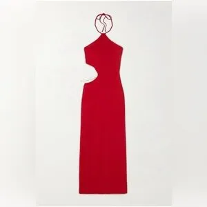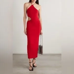 Reformation Net Sustain Helio Cutout Red Halter Dress without Rhinestone Chain