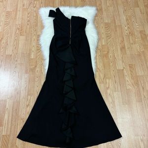 Aqua Formal One-Shoulder Ruffled Gown solid black perfect for a formal event! Size 10 used once for my sister’s wedding. Offers welcome! :)