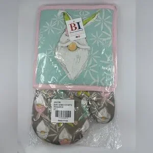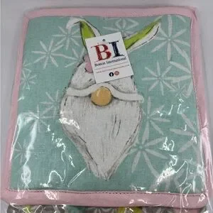 🟣 Bunny Gnome Oven Mitt and Pot Holder NWT Gray, Pastel Pink and Pastel Green