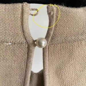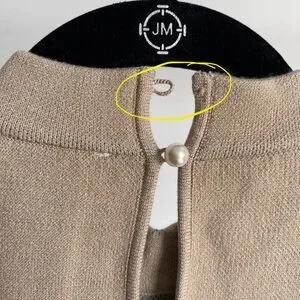 New with tags and defects: there is a missing pearl button on the top of the back neckline. Please see last two pictures for details and remarks. Flaws were circled for extra clarity.