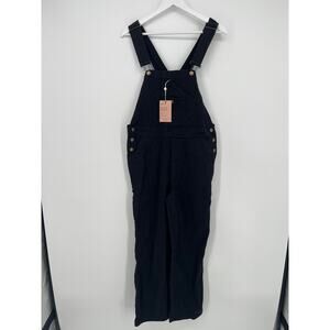 QUINCE Black Organic Stretch Cotton Twill Relaxed Overalls NWT Size Small