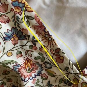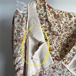 New without tags and defects: there are some large rips in the interior lining on both sides of the bust. There are some pin holes around the front of the neckline. Please see last six pictures for details and remarks. Flaws were circled for extra clarity.