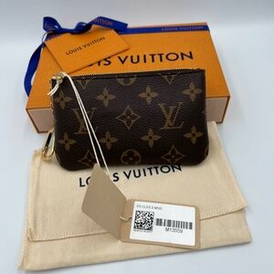A new addition to the Pochette Clés family, which dates back to 1984, this compact version is designed to carry life’s smaller essentials. It is crafted from signature Monogram coated canvas and offers a sleek gold-tone chain with a hook to attach keys. The zipped pocket ensures bills and coins are safely stored and there’s also one slot for a credit card.