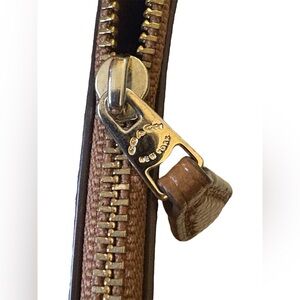 Are you looking for a stylish wristlet you can carry everyday? This COACH brown leather wristlet with brass hardware is super cute and ready to carry your necessities in style so you don't have to carry a big bag. Or you can throw this in your larger bag to keep it organized. Good condition. Normal wear. Some smudges around outside (see pics). Includes bag charm. This is a pre-owned item and may have fading or discoloration, marks or stains, scratches, wrinkling, wear on straps, corners, trim and texture. If this is an issue, buyers should purchase items brand new.