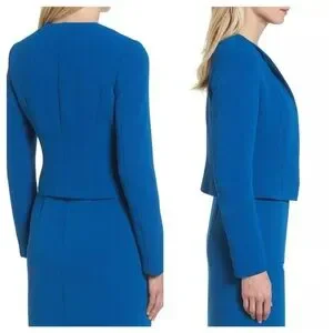 HUGO BOSS Blue Jerusa Textured Stretch Cropped Suit Blazer Jacket US 10