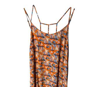 Antibes Blanc Womens Sailboat Print Maxi Dress Size M 100% Rayon Orange