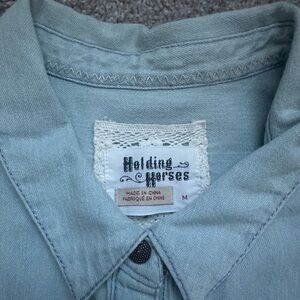 Women’s Embroidered Denim Shirt Anthropologie Holding Horses Medium