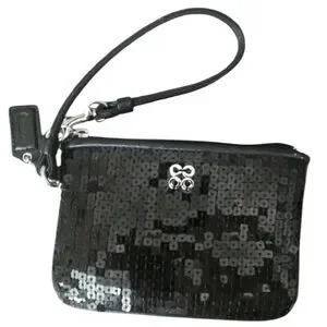Shimmering Coach wristlet adorned in BLACK sequins. Perfect for a night out.