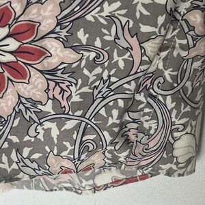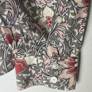 Lands' End Floral Print Button Up Shirt No Iron Supima Cotton Top Gray Pink 14T Tall