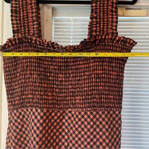 Ganni Smocked Gingham Midi Dress Orange and Black Sleeveless Dress NWT