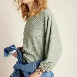 Anthropologie Arya Textured Balloon Sleeve Sage Top Sz Small
