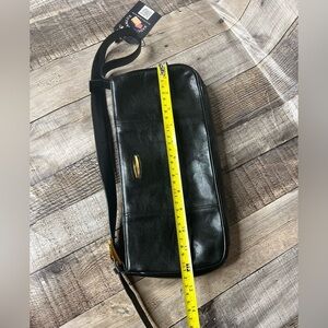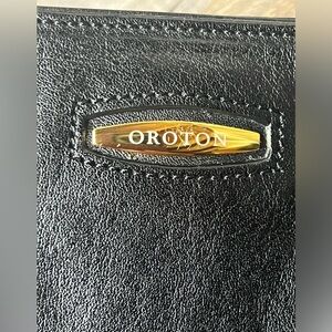 Oroton black leather shoulder handbag
