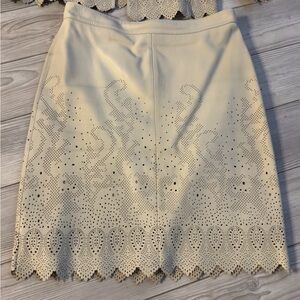 Tory Burch Vegan Leather Pencil Skirt and Jacket with lace like detail