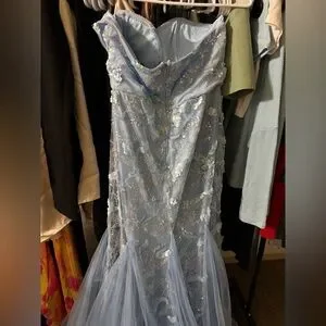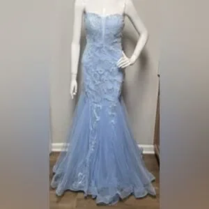 XL Blue Strapless Mermaid Prom Dress- BLUE