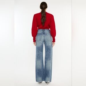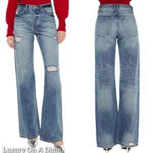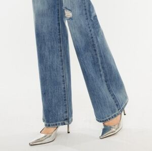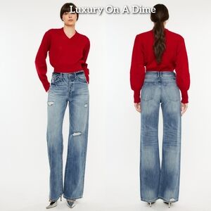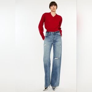 RISEN High-Rise Boyfriend Bootcut Jeans Relaxed Distressed Torn Hole Denim Pants