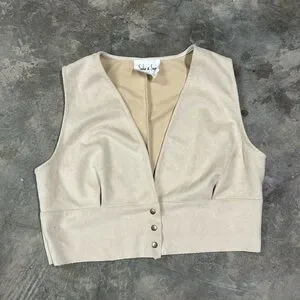 -Stylish beige vest with button details.