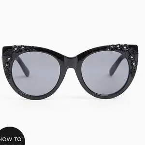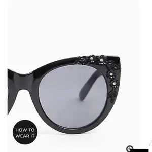 ๐ BLACK FLORAL RHINESTONE CAT EYE SUNGLASSES