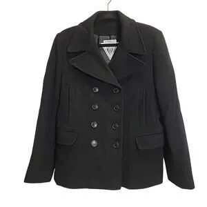 Marvin Richards Black Wool Coat With Pockets Short Double Breasted Women Size 10
