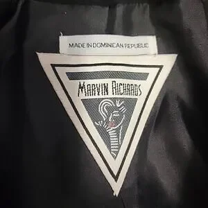 This Marvin Richards black wool coat is a must-have for any stylish woman. The coat features a double-breasted front with pockets, adding both functionality and fashion to your winter wardrobe. The coat is short in length, making it perfect for a night out or a day at the office. The coat is available in women's size 10 and is made of high-quality wool.