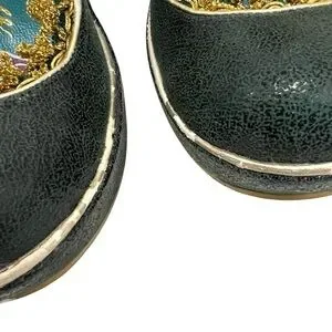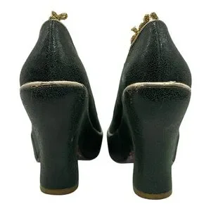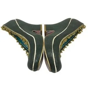 Irregular Choice Green Leather Gold Ricrac Slip On Platform Pumps Heels Women’s 38