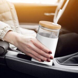 Enjoy your favorite beverages in style with this sleek white glass tumbler. The bamboo lid adds a touch of natural elegance, making it perfect for any kitchen. Ideal for coffee, tea, and more.