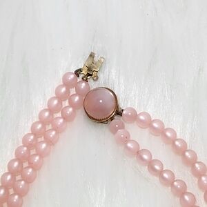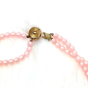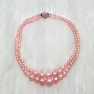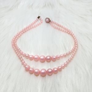 Sweet Vintage Doubled Strand Elegant Faux Pink Pearl Necklace