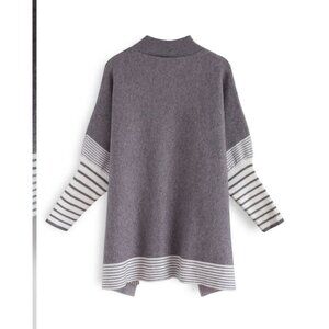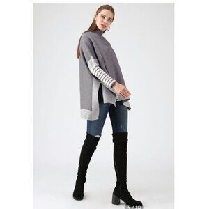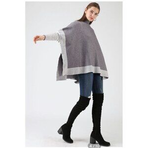 ChicWish Sweater Womens M-L Gray Colorblock Striped Knit Poncho Moc Neck Dolman