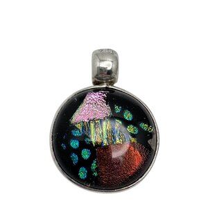 925 Sterling Silver Dichroic Glass Slide Pendant Mexican Vintage Jewelry