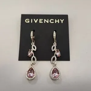 NWT Givency Gold-Tone Pink Vintage Rose Vine Linear Earrings. Never worn. No Returns. Item is as described/shown.